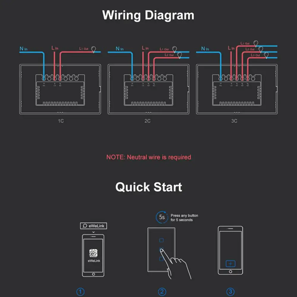 Smart Wifi Touch Wall Light Switch SONOFF T2US TX Border Smart Home 1/2/3 Gang 433 RF/Voice/APP Control US StandardBuy Now On Aliexpress