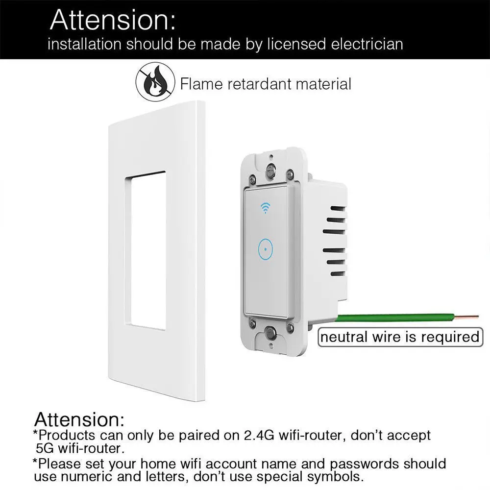 WiFi Smart Light Switch Wireless Remote Control In-Wall Timer Switch for Fan Lights Compatible with Alexa Google Home US VersionBuy Now On Aliexpress