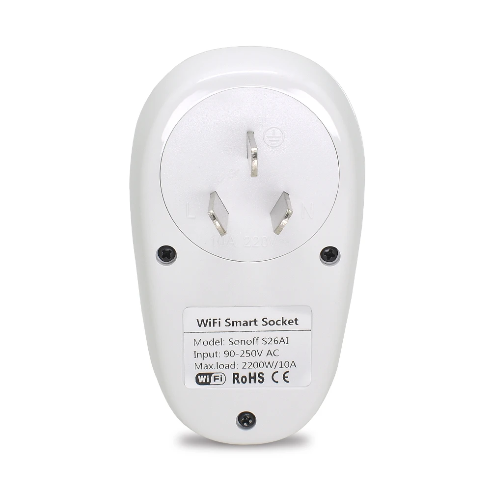Sonoff S26 US WiFi Smart Socket 250V 10A Plug Wireless Smart Home Light Switch Power Sockets Work With Alexa Google Assistant